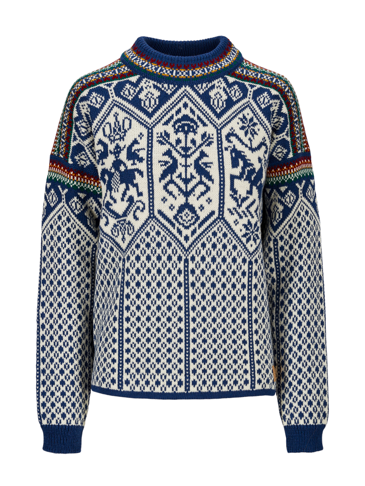 The updated 1994 sweater retains the distinctive symbols inspired by Norse mythology but is crafted in a thinner, softer yarn, with an improved fit and refreshed color palette. Knitted at our factory in Dale, Norway, it is made of 100% wool – just like the original.